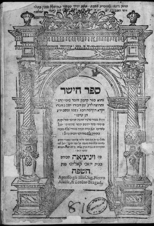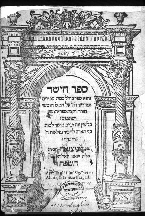 Yehudah Arye of Modena censored Sepher HaYashar, forcing Samuel the Little of Fez to change the cover title of the 1625 edition to read: "The Book of Yashar, which includes some stories and legends of our Sages…"